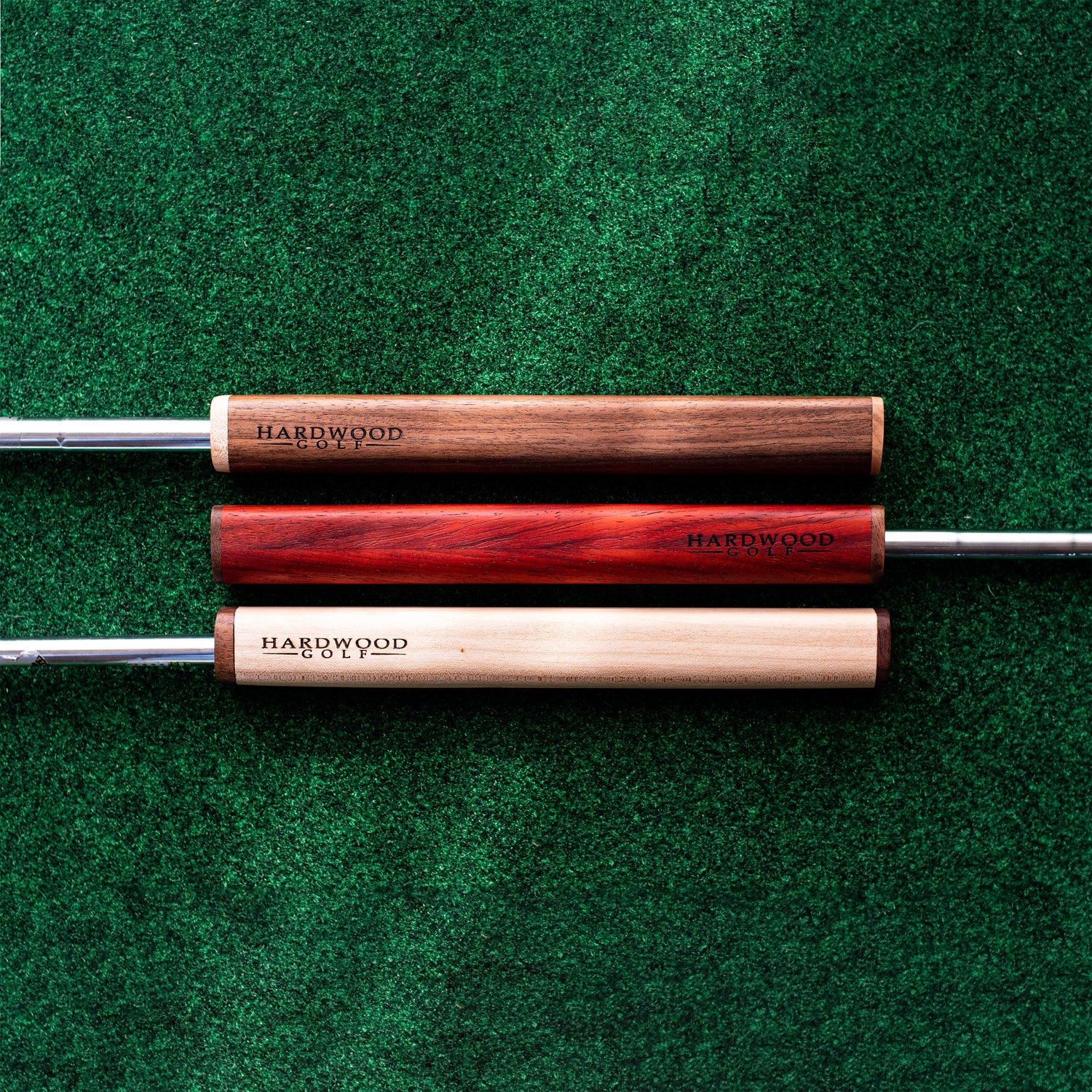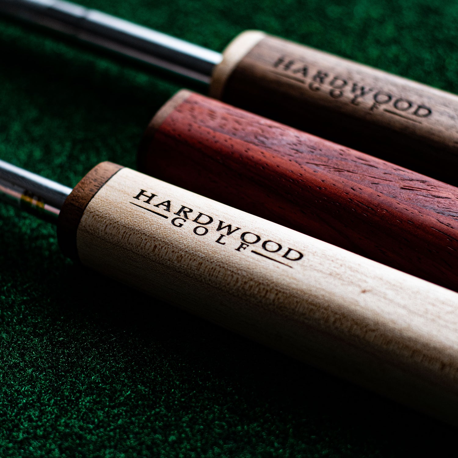 Hardwood putter grips, thoughtfully designed and made by hand. Select your wood, customize with your team name or company logo.